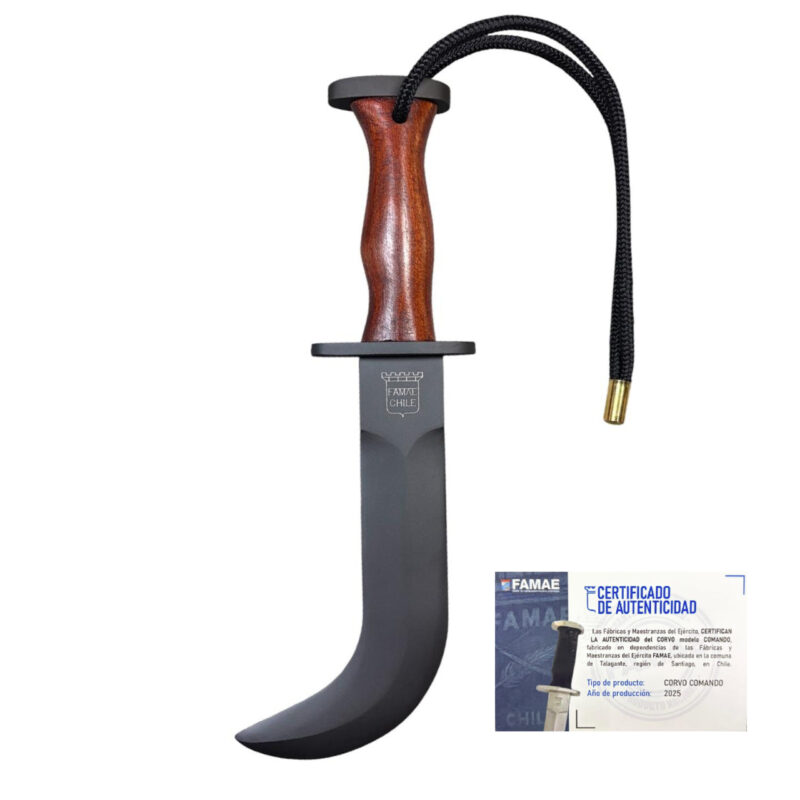 El Corvo Comando FAMAE con mango de madera es mucho más que un cuchillo: es un símbolo de tradición y orgullo nacional, una pieza que refleja el legado histórico del corvo en la cultura militar de Chile.