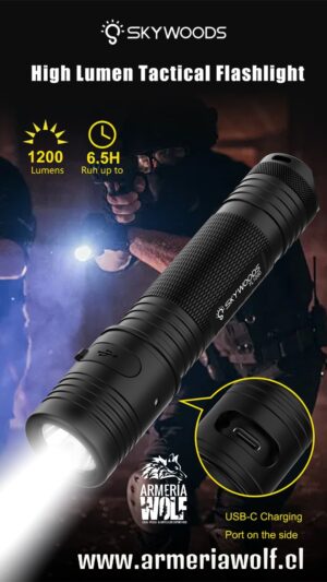 3) Material: Fabricada en aleación de aluminio de grado aeronáutico para mayor durabilidad y resistencia. Con clasificación de impermeabilidad IPX7 y materiales de alta calidad, esta linterna para exteriores está diseñada para evitar la penetración de agua.