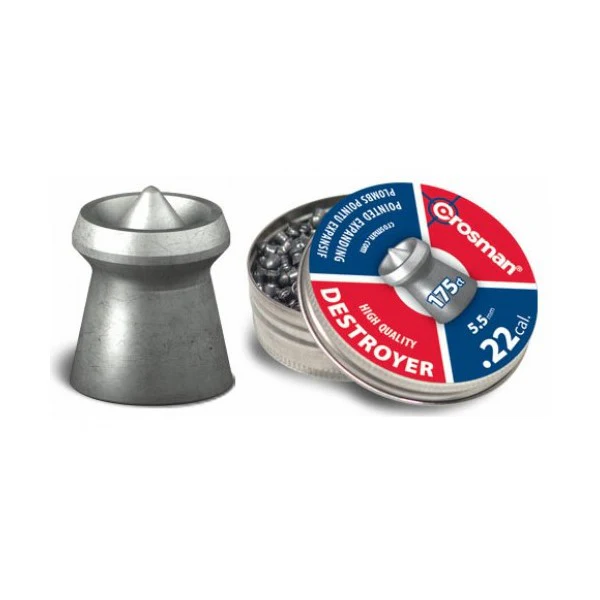 Postón Crosman Destroyer HP calibre 5,5 mm, diseñado para alto impacto y expansión controlada. Ideal para caza menor y control de plagas, ofrece gran poder de penetración y precisión.